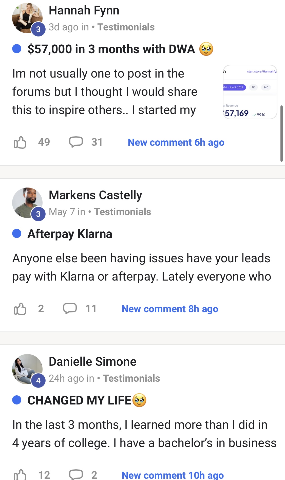 This course actually comes with its own community of 20,000+ people where you can ask questions & network. In addition to that, if you get the course with me, you will be added into my PRIVATE CHANNEL youll receive my personal phone number & an optional group chat with weekly calls! I want to see you become a success story!
