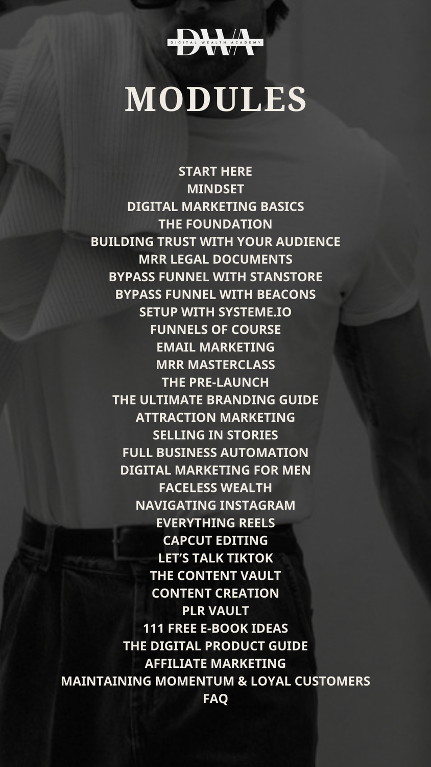 Learn how to promote The DWA course or any other product. This will teach you how to quickly grow your audience and make sales via social media marketing.